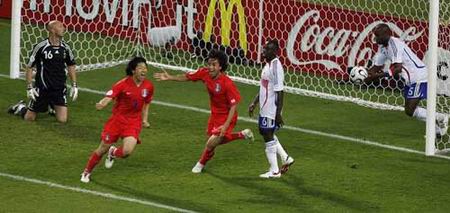 据巴西《大地》网6月18日报道,在北京时间今天凌晨结束的G组的小组赛中,凭借在曼联踢球的朴智星的进球,韩国队逼平了法国队,出线形势一片大好。而朴智星也被国际足联评为本场最佳球员。目前韩国队以积4分的成绩暂列小组第一。