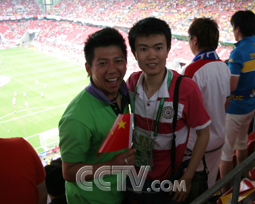 很高兴能够在科隆世界杯球场问候央视国际的网友们,大家可以一直关注央视国际网站,关注这里的世界杯,我们会有更多更好的世界杯资讯跟您一起分享!——羽泉
