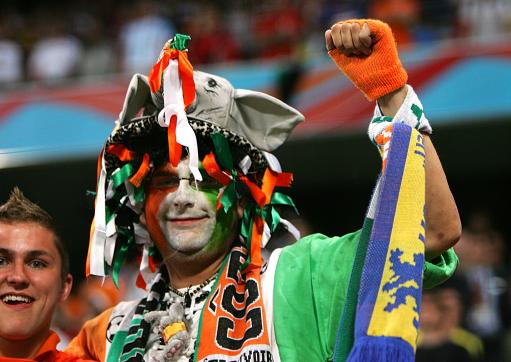 图为科特迪瓦球迷在现场助威。
