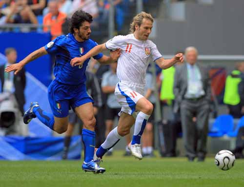 对于这样的结局,捷克队已经经历了多次,原因也都一样,就是在重大比赛中,伤病的事件时常伴随着倒霉的捷克队。在2004年欧锦赛半决赛中他们失去了内德维德,然后就是球队被希腊队在半决赛中淘汰。之后就是本届杯赛斯米切尔因为受伤而错过报名,这也对后来全队的实力造成了一定的影响。然后在首场比赛中表现出色的科勒在攻入一球之后,马上就受伤下场,同样受伤的还有他的锋线搭档巴罗什,这样,捷克队面对加纳队后防线的就是长期受伤的替补前锋洛克文茨。这位前凯泽斯劳腾队前锋在去年秋天十字韧带受伤后,一直就没有恢复到应有的世界杯水平。同时因为他的速度偏慢,在一次反抢中,他因为犯规得到了本届杯赛个人的第二张黄牌。这样,在面对意大利队比赛时就连当一个替补的机会都失去了,只能够在场外观战。