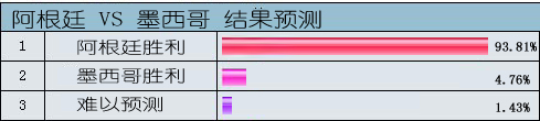 墨西哥队本届世界杯的表现尚未达到去年联合会杯的水平,特别是球队关键人物———前锋博尔格蒂和后方领袖马科斯,都远未达到自己的最佳状态,所以不出意外的话,阿根廷是能够跨过仙人掌进入8强的。
