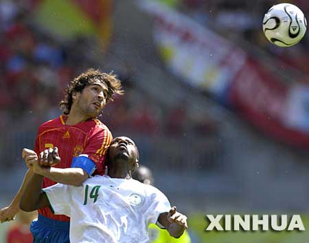 爆笑世界杯:西班牙1:0沙特 劳尔"头球摆渡"