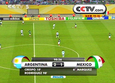 墨西哥队迎战阿根廷队,也是中北美足球老大与南美足球代表的一场碰撞。比赛刚刚开始,墨西哥队就依靠马科斯的头球得手,取得领先。始料未及的是帮助阿根廷队扳平比分的进球也来自墨西哥队!墨西哥球员博尔格蒂在解围时,由于受到干扰,不慎将球顶入自家球门。尽管,大赛组委会将进球算在和他争抢的阿根廷前锋克雷斯波帐下,但是,慢镜头显示,这的确是一个乌龙球(图)!两支队伍彼此实在是太熟悉了,比赛也一度陷入僵持阶段。在90分钟的比赛中,战成1比1平。随着,在最后补时阶段,裁判将阿根廷的一个进球误判越位后,两队不得不进入本届杯赛开赛以来的第一个加时赛。加时赛8分钟,阿根廷队来自西甲马德里竞技俱乐部的中场小将马可西·罗德里格斯打进一个精彩绝伦的“世界波”(图),也正是凭借这个技惊四座的入球,阿根廷2:1淘汰了墨西哥。他们下一场的对手将会是德国队。