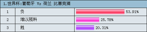 网友1:荷兰VS葡萄牙 推荐荷兰胜