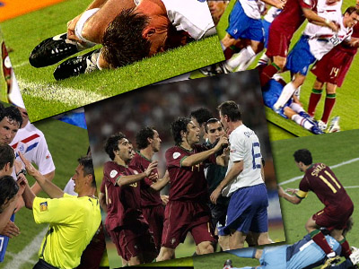 这是一场“以武会友”的比赛,没有贝利、查尔顿、克鲁伊夫等巨匠的惊世才华和无穷创意,只有杀红了眼的队员满场的飞铲、假摔,伴随而来的是伊万诺夫越掏越顺手的红黄牌。