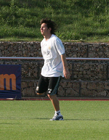 好在阿根廷队的训练还是在18点准时开始,球员们拖着疲惫的身体来到训练场,但是等待他们的也不是什么严格意义上的训练,只是以放松为主的恢复训练,痴心球迷依然在场边为他们心爱的球员呐喊,梅西是其中受追捧最多的,训练中梅西耶很放松,总是和队友阿亚拉开玩笑,而且永远跑在球队的最后面,伺机“袭击”队友,训练场上一片欢声笑语。