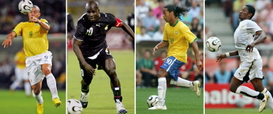 | 巴西队将与有着“非洲巴西”之称的加纳队在八分之一决赛中交锋。从左到右分别为罗纳尔多、阿皮亚、小罗和吉安。 |