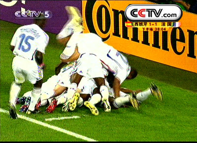 齐达内将继续率领法国队向前进,今天齐达内表现的很好,这已经是近期内我们能够看到最好最好的齐达内了。里贝利、维埃拉、齐达内,3:1,法国人淘汰了西班牙队。