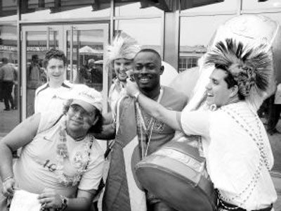 那位大汉叫胡奥,是里约热内卢的一位货车司机。“这家伙那么大,做了很费功夫吧?”记者问。胡奥咧嘴笑了:“花了我两个星期的时间!不过这都是值得的!”为了来德国为巴西队加油,他花费了自己近半年的收入,“其实像我这样的巴西球迷还有很多,大家的收入都不高,不过为了给巴西加油,一切都显得无关紧要了”。“看球比吃饭还重要吗?”记者调侃。“当然了!”胡奥用一种很奇怪的眼神看着记者,仿佛这是一个毋庸置疑的问题,“在巴西就是这样,球迷为了心爱的球队可以甘愿放弃很多东西”。至于理由,胡奥回答得更是简单,“幸福感!走到其他球迷群体中间,巴西球迷永远是最骄傲的!”