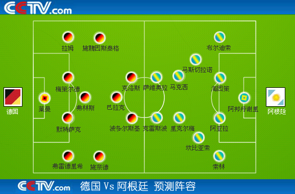 谁主沉浮:诸侯列强逐鹿问鼎,8大门派笑傲江湖,北京时间6月30日23时首轮赛事打响于本届世界杯的决赛举办地柏林奥林匹克体育场,德国战车生死对决中美劲旅---阿根廷,进行四强入场券的争夺,看苍茫大地,谁主沉浮?综观实力,对战双方兼不可小视,只是德意志人占有东道主之优势,成为阿根廷的取胜疾患,如若论实力来讲阿根廷未必羞于德国,在历史16次的交战记录中阿根廷以7胜4平5负略占上风,本场对战将是德阿两队历史上的第17次交锋,身高对于不到一米八的阿根廷中卫海因策和阿亚拉,德国球员克洛泽和波多尔斯基具有绝对的杀伤力,能否突破德国的空中冲击还要看阿根廷教练佩尔尔曼的作战策略,及球员的表现。