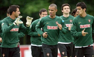 新华社消息:6月28日,葡萄牙国家足球队在德国马林费尔德进行训练,备战将于30日进行的第十八届世界杯足球赛四分之一决赛与英格兰队的比赛。