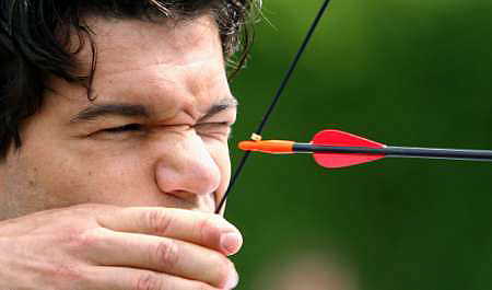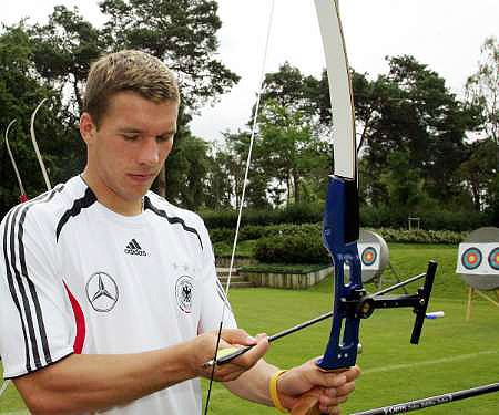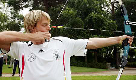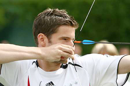 德国队用射箭放松 队员瞄准目标"箭"指冠军