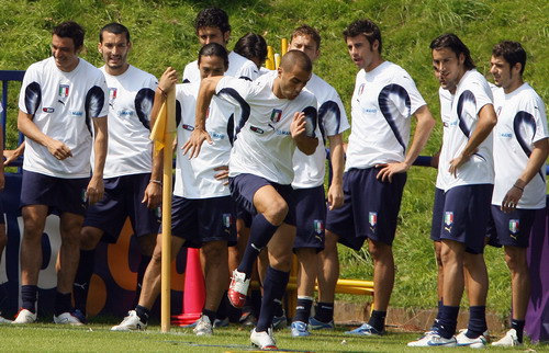 新浪体育消息:当地时间6月29日,意大利队在杜伊斯堡进行训练。北京时间7月1日凌晨3:00,他们将在汉堡AOL竞技场迎来1/4决赛对手乌克兰队。图为意大利队备战1/4决赛。