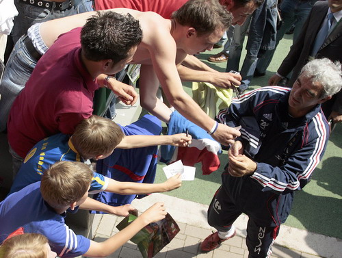 图文-法国备战1/4 主帅多梅内克为球迷签名