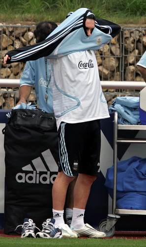 新浪体育消息:当地时间6月29日,阿根廷队在赫尔佐根奥拉赫进行训练。北京时间明晚23:00,他们将在柏林奥林匹克体育场迎来1/4决赛对手德国队。图为阿根廷备战德阿大战。