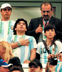 {2}“球王”出征,公主相随——马拉多纳与爱女。