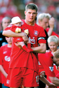 {3}刚刚下场的斯蒂芬·杰拉德呵护着宝贝女儿Lilli。