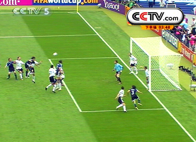 德国队就发起一次进攻,由克洛泽接队友的头球摆度,打入扳平比分的一球。