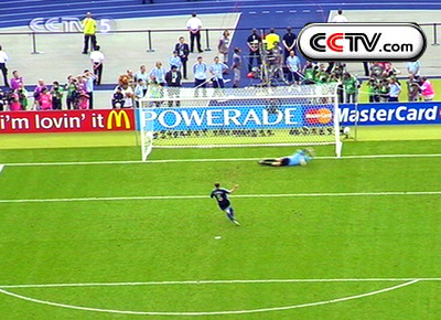 之后的比赛,再次陷入僵局。德国队并没有利用自己有冲击力的长传向阿根廷发起进攻,而是坚持和对手比技术。两队都没有制造出太好的机会,将比赛托入残酷的点球大战。德国人坚毅的性格再次在点球大战中起到了决定作用,中场大将巴拉克尽管在比赛中抽筋,但是依然轻松罚进点球。