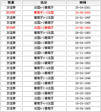 法国VS葡萄牙交战记录: