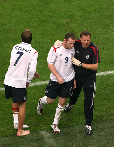 CCTV.com消息:在北京时间7月2日凌晨结束的第3场四分之一决赛中,英格兰队在鲁尼被红牌罚下,队长贝克汉姆由于身体不适早早被替换下场的情况下,与葡萄牙队在120分钟互交白卷,之后在残酷的点球大战中被葡萄牙神奇门将里卡多扑出3球,以1比3告负,从而结束了本届德国世界杯之旅。与此同时,英格兰队在世界杯上点球必败的纪录却在继续延续着。赛后,英格兰队主教练瑞典人埃里克森在记者招待会上表示,希望媒体们能对在这场比赛中因红牌而被罚下的鲁尼宽容些,因为他是英格兰队未来的希望!