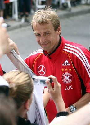 当德国队今年3月在一场热身赛中,以1比4惨败给意大利队之后,克林斯曼险些下课。不过4个月后,德国队闯入了世界杯四强,克林斯曼又突然成了英雄。如今德国又将在半决赛中对垒意大利。