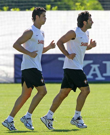 图:葡萄牙队备战 C罗跑步紧跟菲戈(9)