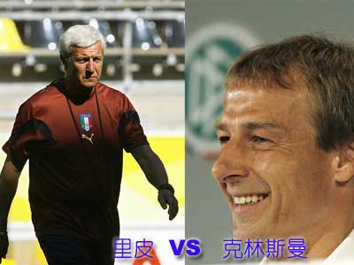 CCTV.com消息:58岁的意大利教练里皮曾带领他的球队赢得过一系列冠军头衔;41岁的德国教练克林斯曼则是第一次做教练。不过,面对半决赛,德国和意大利教练脸上的表情却基本相同——看不出对胜利憧憬的喜悦。