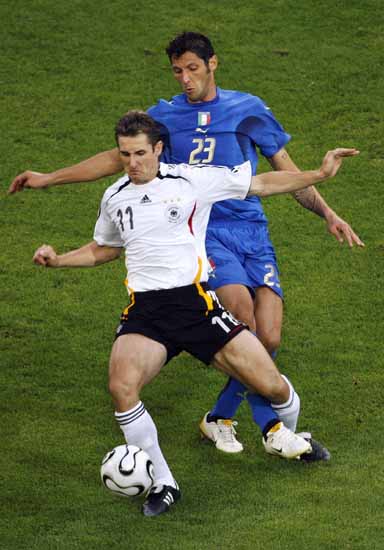 卡纳瓦罗依旧是德国后防表现最稳定的一环,在一对一的防守中没有给对方的前锋什么机会,几次关键的堵枪眼给人留下很深的印象。在对方的几次快速反击中,甚至能杀到中场位置准确地阻截对手的进攻,可以说是意大利本场比赛的最佳球员。