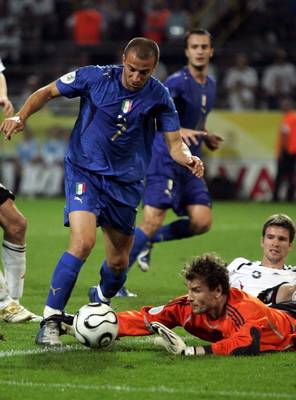 新浪体育消息: 意大利凭借格罗索和皮耶罗在加时赛的两个进球,2-0淘汰德国队,晋级决赛,在赛后,两位进球功臣随即在场边被记者拉住。