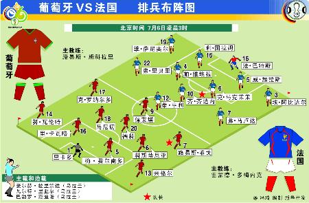考虑到葡萄牙队在以往大赛中对阵法国队屡屡处于下风,因此主教练斯科拉里应对大赛的经验这时将显得尤为重要。而齐达内的表现如何,将在很大程度上决定法国队在本场半决赛中的命运。