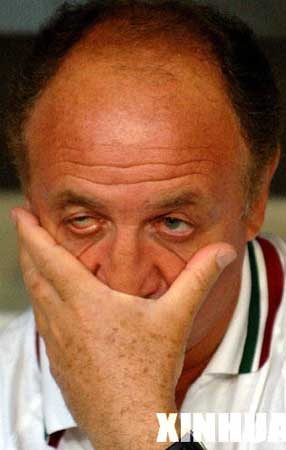 新华网消息:葡萄牙队主教练路易斯·斯科拉里赛后表情怪