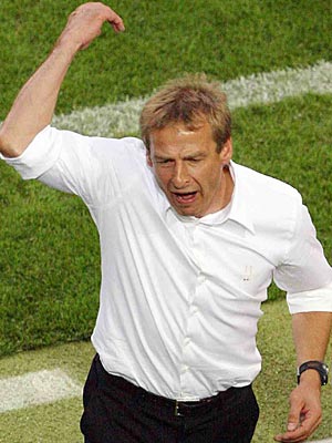 在克林斯曼的执掌下,德国足球将走进自己的黄金时代。原则上说,世界杯对于现在这支年轻的球队来的还太早。在队中有很多年轻的新兵,比如奥东科尔,波多尔斯基,施魏因斯泰格等等。在2008年的或是2010年的世界杯上才能发挥出全部水平。“和他们相比,意大利队更有经验,” 迈尔-福费尔德表示。经纪人表示:“我们是一支球队,我们要提出最漂亮的球,我们要给人耳目一新的感觉。我认为,很少有球队能和球迷保持如此亲密的关系。”