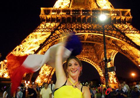 华奥星空消息:北京时间2006年7月6日,2006年德国世界杯法国进军决赛,巴黎球迷在埃菲尔铁塔前庆祝。