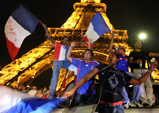 CCTV.com消息:在法国队以1比0击败葡萄牙队,成功杀进2006年世界杯决赛后,许多法国市民涌向街头狂欢。