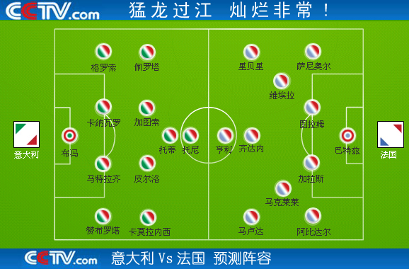 <二>法国Vs意大利:法国Vs意大利:评测:绿茵之上 柏林之巅 蓝衣对战 胜负一线 意大利:把曾经失败的苦涩抛在脑后 法国:我们同生共死