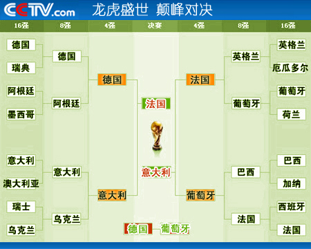 体坛周报消息:世界杯终于进入了最后的决战。意大利队和法国队在决赛会师并不让人并不让人意外。进入四强的德国人实际上已经超水平发挥了,他们没什么不高兴的,而葡萄牙人的发挥有点烂,没有拿过任何冠军奖杯的他们败于经验的缺失。