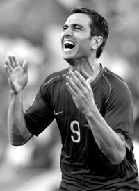 葡萄牙队的中场有菲戈这样的世界级球星,但在前场,他们只拥有一个欧洲二流前锋保莱塔。从这一点上说,葡萄牙队完全可以称之为“不幸”,因为保莱塔从来没有在球队最需要的时候站出来过。2004年欧洲杯如此,本届世界杯同样如此。