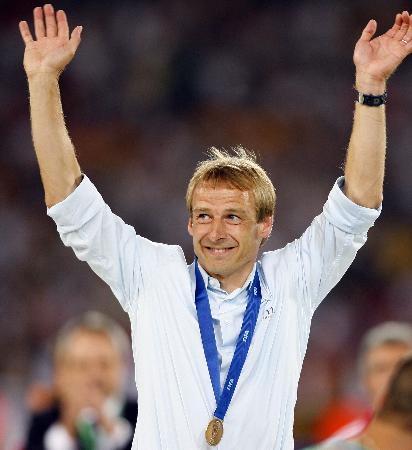 CCTV.com消息:在本届世界杯上,德国队主教练克林斯曼带领年轻的东道主球队取得季军,实现了德国队赛前的既定目标。德国媒体、球迷以及足协认为,克林斯曼用他那富有激情式的执教方式带领德国队重新回到世界顶级强队里,并呼吁他继续留任德国队主教练。日前,一项最新民调显示,大部分德国妇女十分青睐克林斯曼,把他看成国家的英雄。