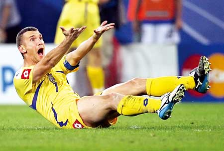 在德国,舍瓦确实一直没鸣出声来。瑞士和他们一样乱糟糟,而且瑞士没有舍瓦,但乌克兰还是到最后点球时段才挤掉对手。没有人打破瑞士的球门,舍瓦也一样。不过,至少在和突尼斯的较量中,舍瓦起了点作用,他在对方禁区里摔了个跟斗,搞回来一个点球。乌克兰就是靠着这个点球,拿到第二个3分的。