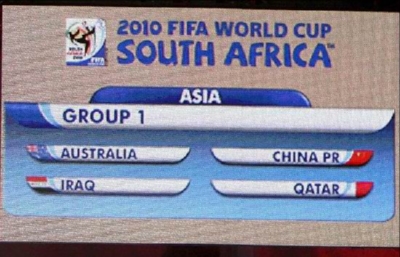 CCTV.com消息:2010年南非世界杯亚洲区预选赛终于在南非的班德揭晓,中国队在小组赛中将与澳大利亚、伊拉克、卡塔尔队分在同一小组,无疑中国队被分在死亡之组,首场比赛中国队迎战伊拉克。