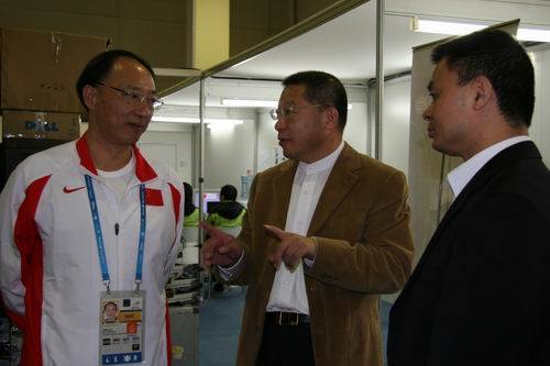 刘鹏局长参观中央电视台亚运会前方报道编播区。