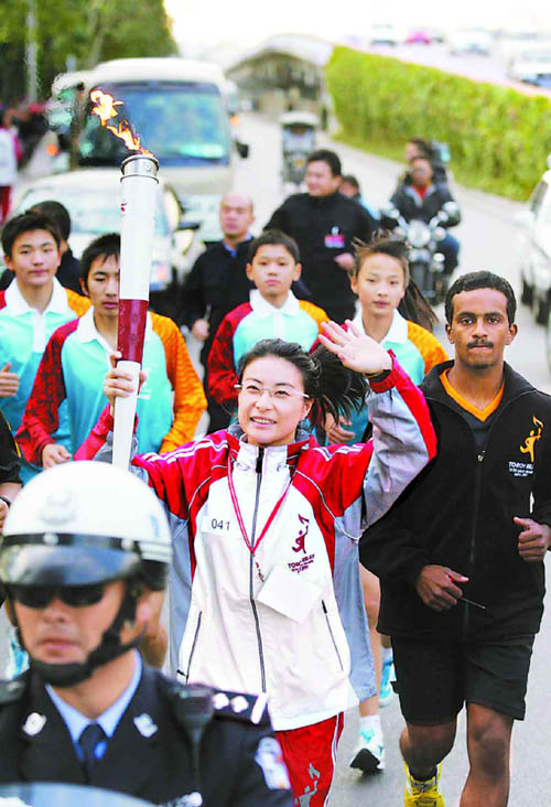 昨天下午,在复兴门北大街,路边的许多行人都在驻足观看国际象棋棋后谢军传递多哈亚运会火炬,一些人骑着自行车或跑步跟着谢军一同传递。谢军是第17棒传递手,她说:“我不是代表一个人,我是代表整个国际象棋这个项目在传递多哈亚运会火炬。”