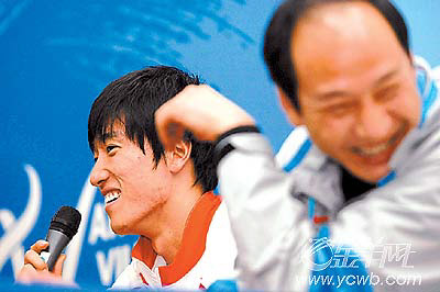 记者问孙海平亚运会回去后是否立刻开始冬训,没等孙教练回答,刘翔抢着说:“我最关心亚运会后教练给我放多长时间假。”看来,“飞人”比了一年赛,真是想歇歇了。孙教练笑而不答。