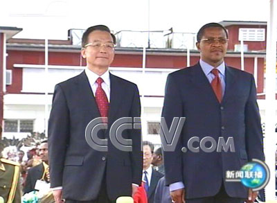 CCTV.com消息(新闻联播):记者现场:这里是坦桑尼亚首都达累斯萨拉姆。应坦桑尼亚总统基奎特的邀请,国务院总理温家宝于当地时间22号下午抵达这里,开始对坦桑尼亚进行正式访问。