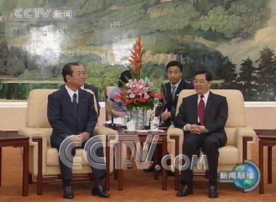 CCTV.com消息(新闻联播):中共中央总书记、国家主席胡锦涛今天下午在人民大会堂会见了日本民主党党首小泽一郎。宾主进行了友好的谈话。