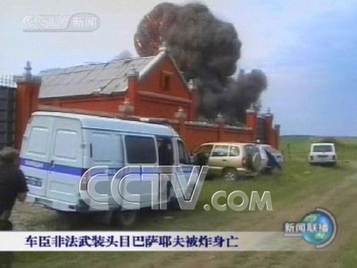 CCTV.com消息(新闻联播):俄罗斯联邦安全局局长帕特鲁舍夫10日向总统普京报告说,俄罗斯头号通缉犯、车臣非法武装头目巴萨耶夫当天在俄罗斯印古什共和国被炸身亡。据报道,巴萨耶夫与一批非法武装分子计划在本月举行的八国集团圣彼得堡首脑会议期间有所行动,借此向俄罗斯领导人施加政治压力。