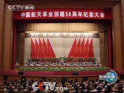 CCTV.com消息(新闻联播):国防科工委、总装备部今天上午在京隆重召开中国航天事业创建50周年纪念大会。中共中央总书记、国家主席、中央军委主席胡锦涛为大会发来贺信。