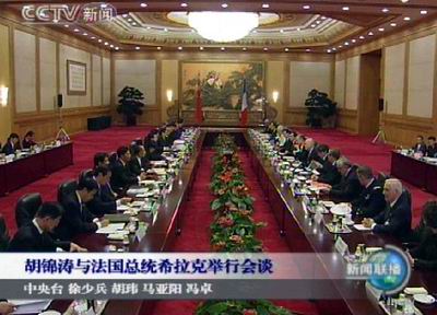 CCTV.com消息(新闻联播):国家主席胡锦涛今天与来华进行国事访问的法国总统希拉克举行了诚挚友好、富有成果的会谈,就双边关系和共同关心的重大国际及地区问题深入交换了意见,达成广泛共识。