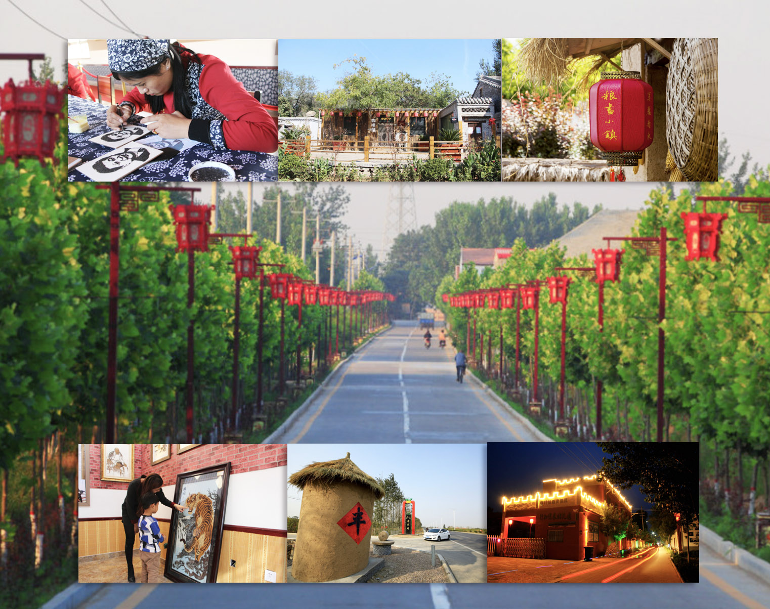 借助粮画产业,馆陶县将寿东村全力打造成粮画小镇,1000多万元政府投入撬动了3000多万元社会资本。寿东村对街景路面等进行了整体规划设计,并以“一门一景、一户一品,体现灵性、各具特色”为特点,对村内所有民居院落进行了单体规划设计,让寿东村从脏乱差的贫困村破茧成蝶。